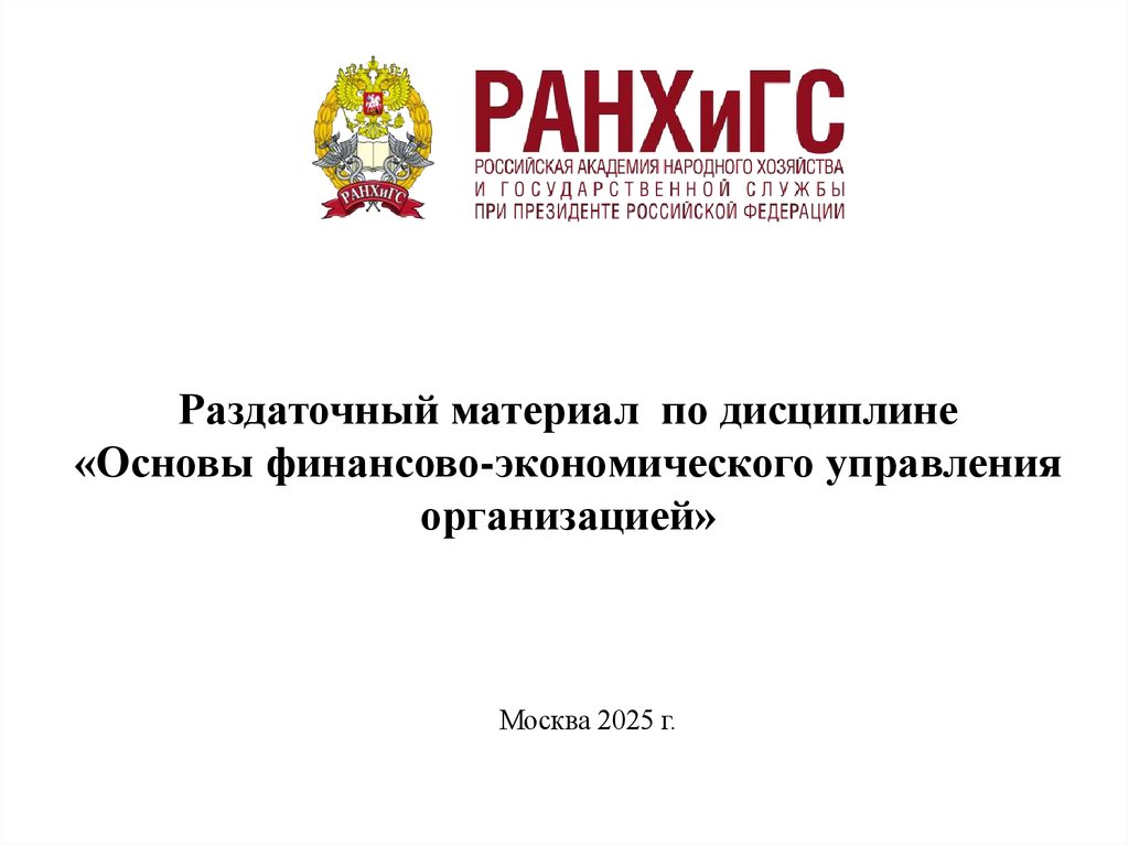 Раздаточный материал по дисциплине«Основы финансово-экономического управления