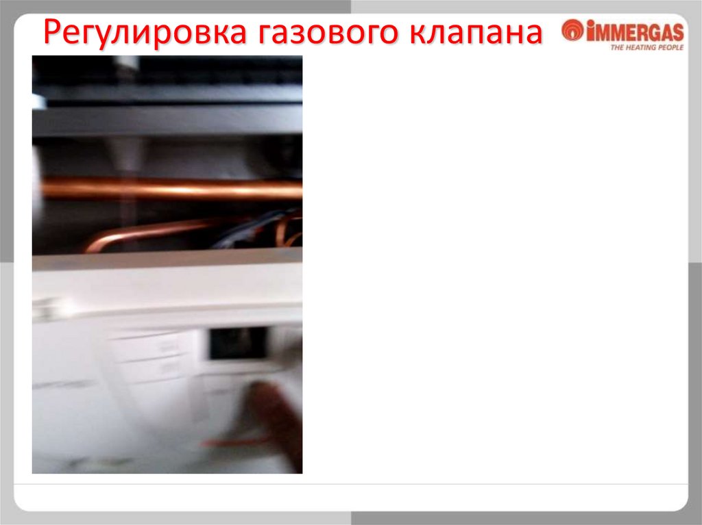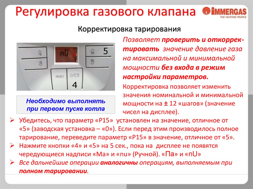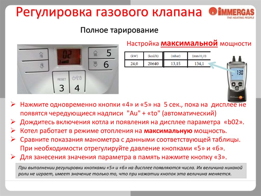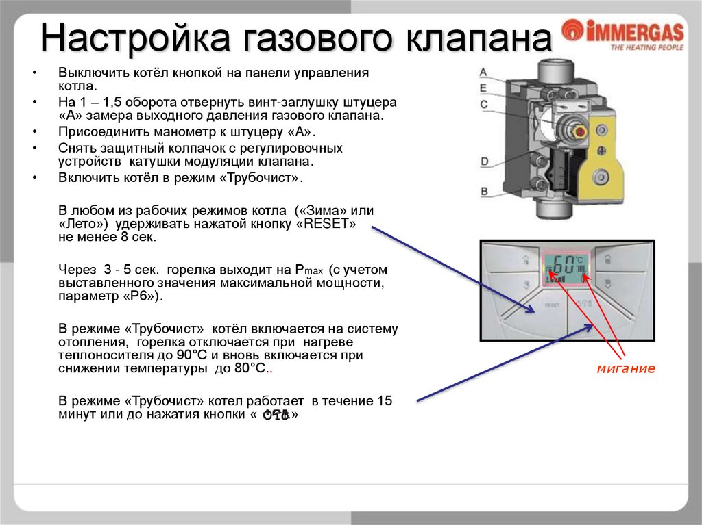Настройка газового клапанаВыключить котёл кнопкой на панели управления