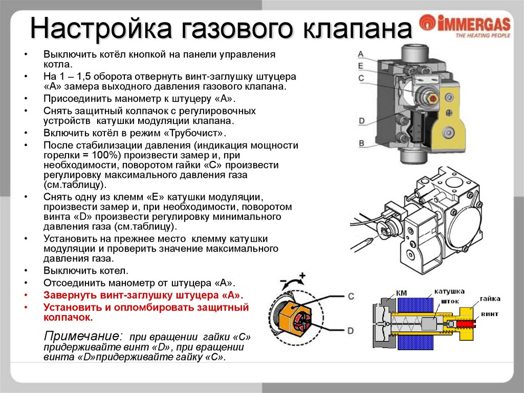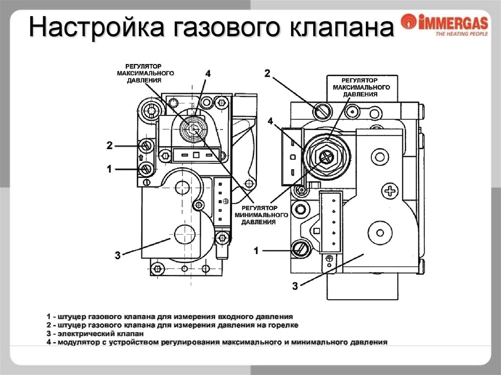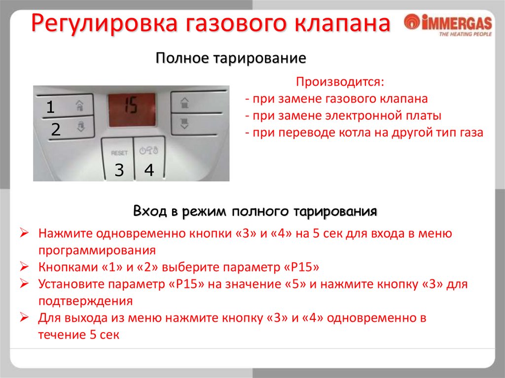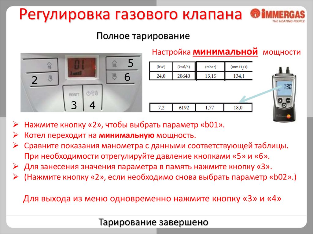 Настройка газового клапанаВыключить котёл кнопкой на панели управления