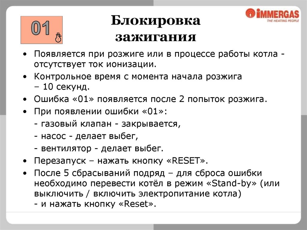 • Появляется при розжиге или в процессе работы котла отсутствует ток ионизации.