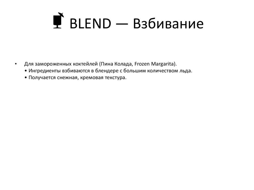 техникам приготовления коктейлей