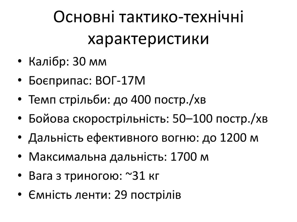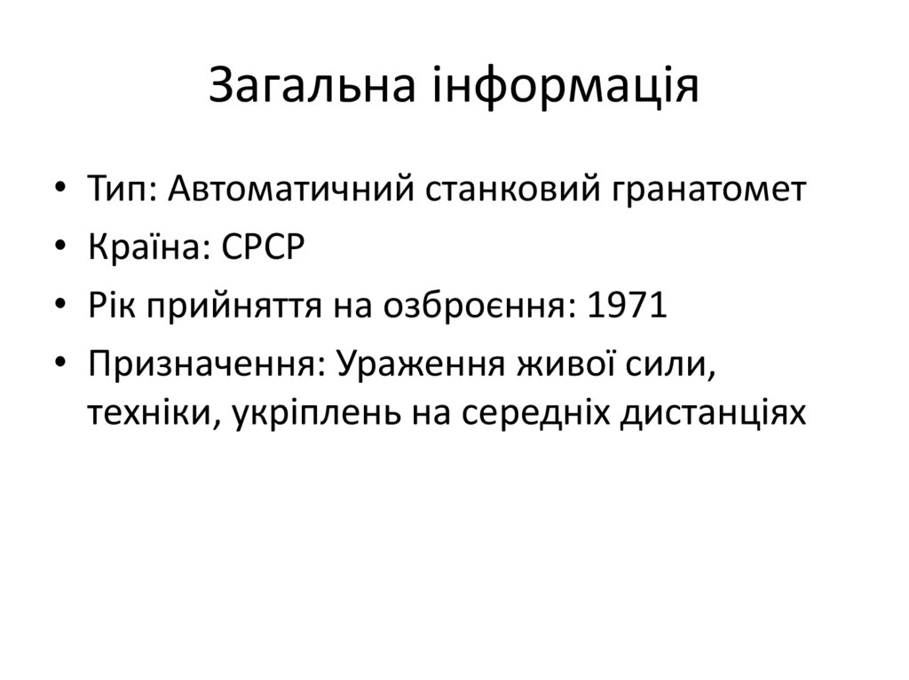 Загальна інформація• Тип: Автоматичний станковий гранатомет
