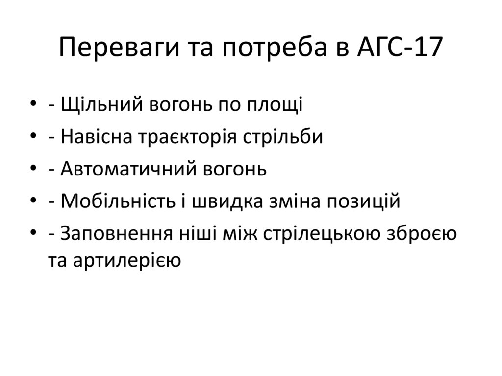 Переваги та потреба в АГС-17• - Щільний вогонь по площі