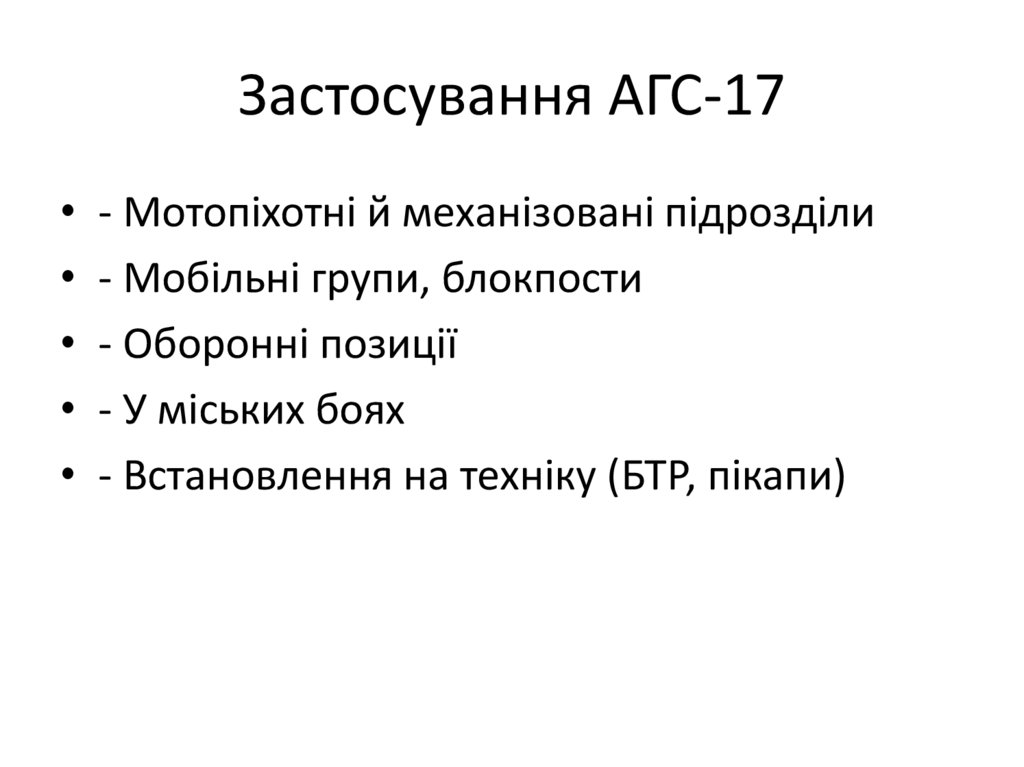 Застосування АГС-17• - Мотопіхотні й механізовані підрозділи