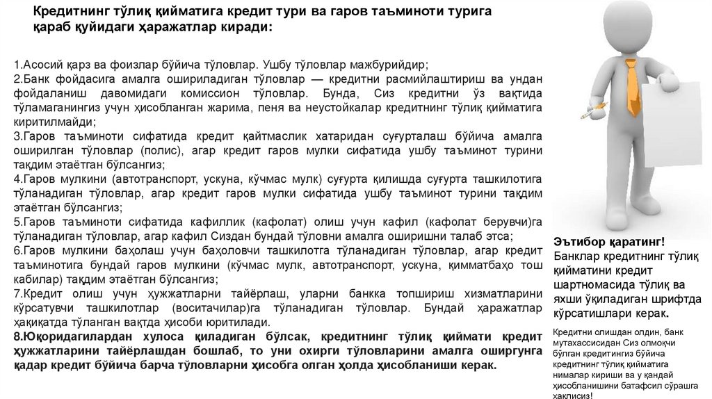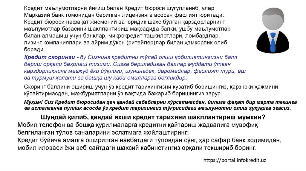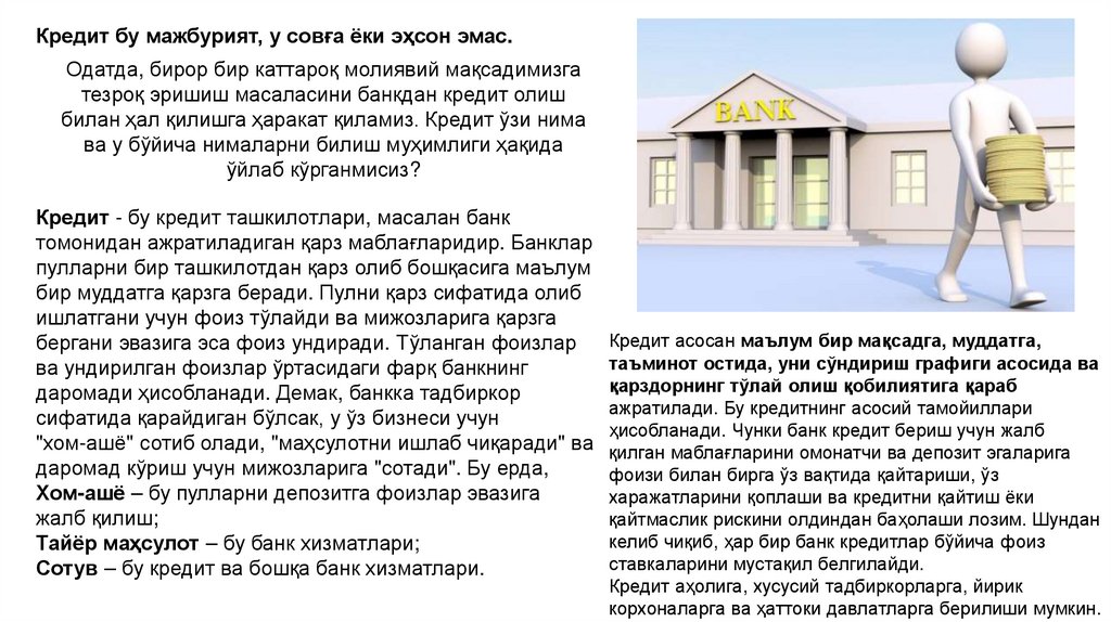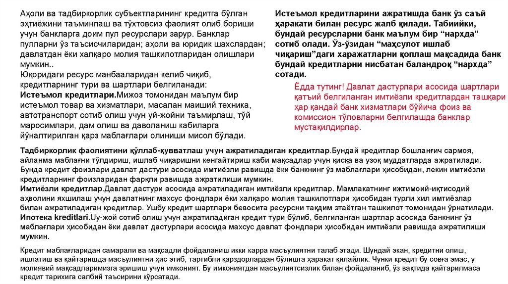 (МКТ, ломбарлардлар ва бошқалар) фаолиятини