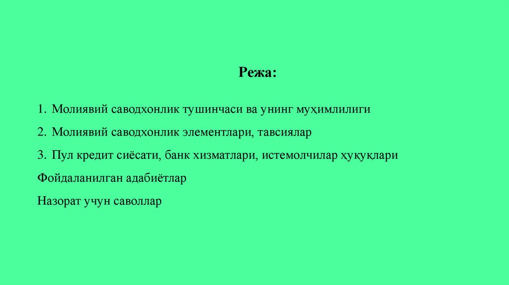 3. Пул кредит сиёсати, банк хизматлари, истемолчилар ҳуқуқлари