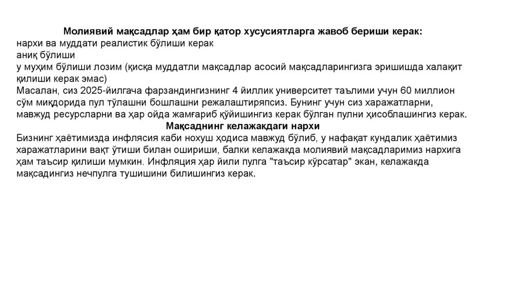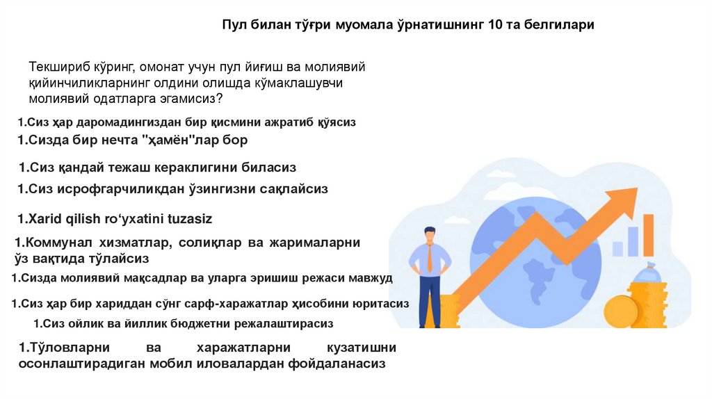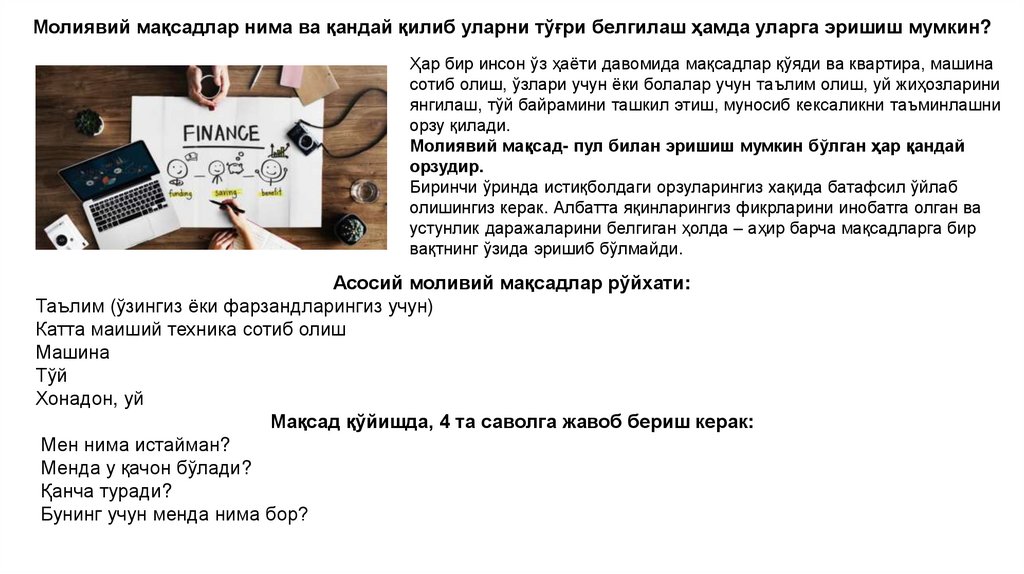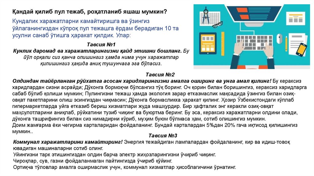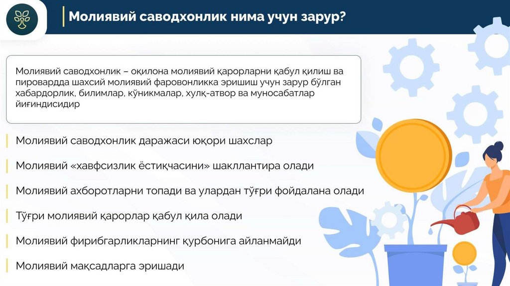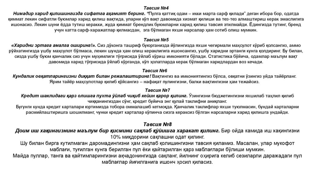 2. Молиявий саводхонлик элементлари, тавсиялар