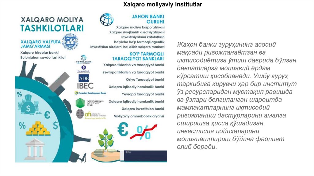 Xalqaro moliyaviy institutlarЖаҳон банки гуруҳининг асосий