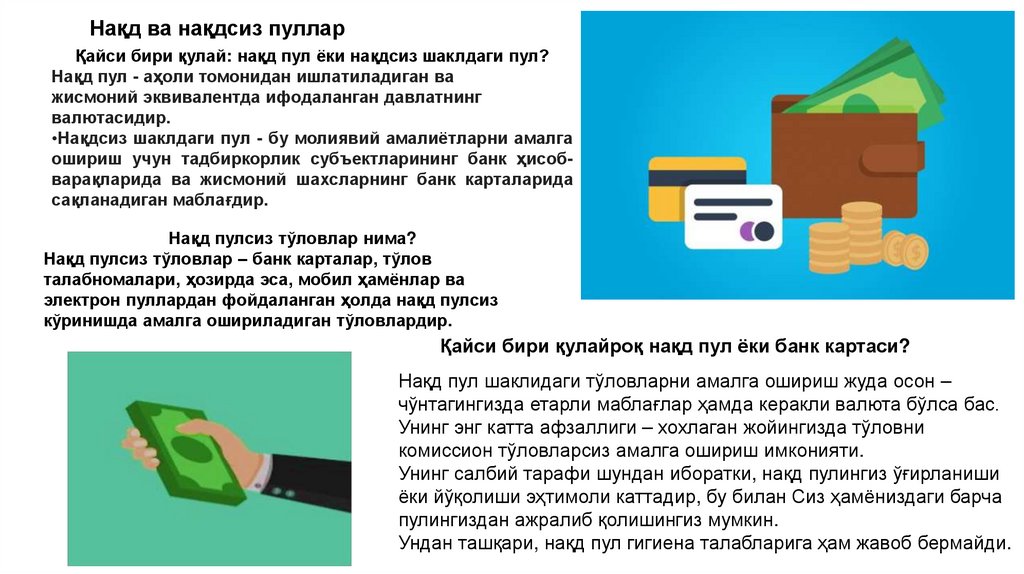 Нақд ва нақдсиз пулларҚайси бири қулай: нақд пул ёки нақдсиз шаклдаги пул?