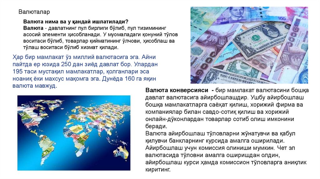 ВалюталарВалюта нима ва у қандай ишлатилади?