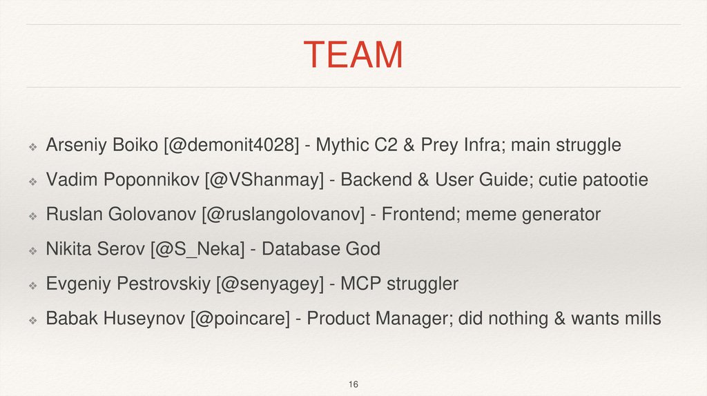Arseniy Boiko [@demonit4028] - Mythic C2 & Prey Infra; main struggle