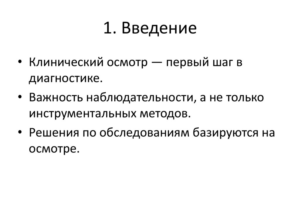 1. Введение• Клинический осмотр — первый шаг в