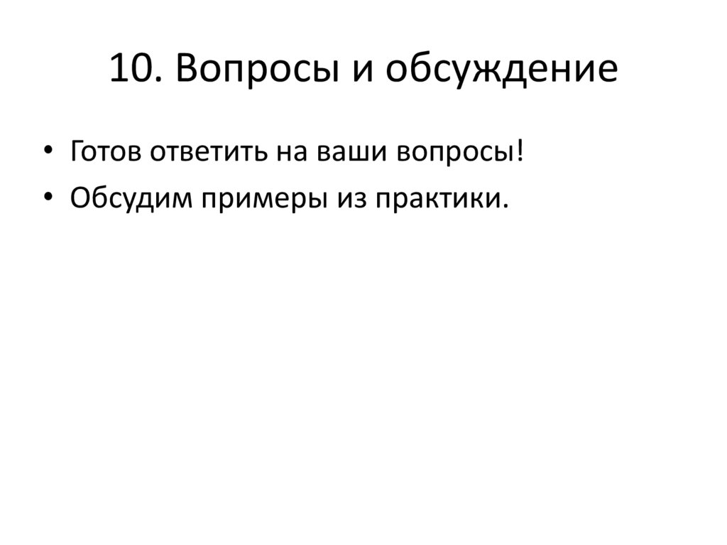 10. Вопросы и обсуждение• Готов ответить на ваши вопросы!