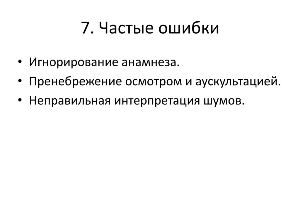 7. Частые ошибки• Игнорирование анамнеза.