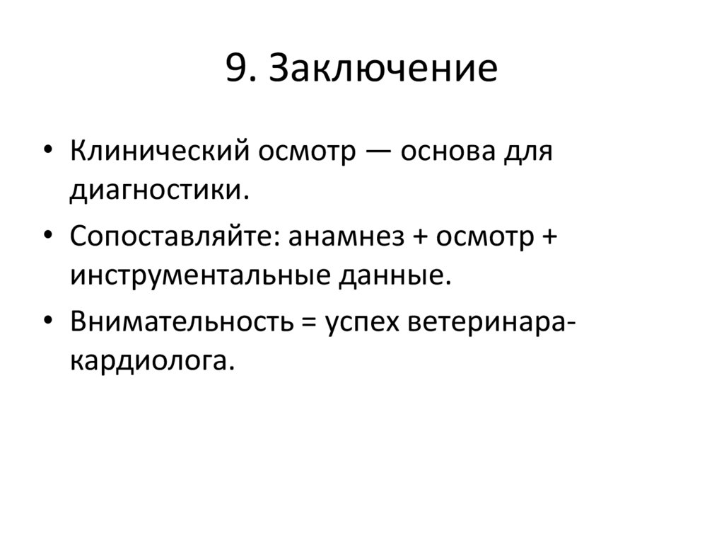 9. Заключение• Клинический осмотр — основа для