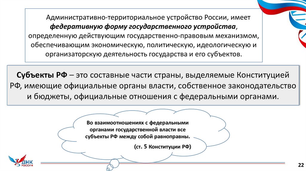 Федеральный округ России не является конституционной частью административно-территориального деления
