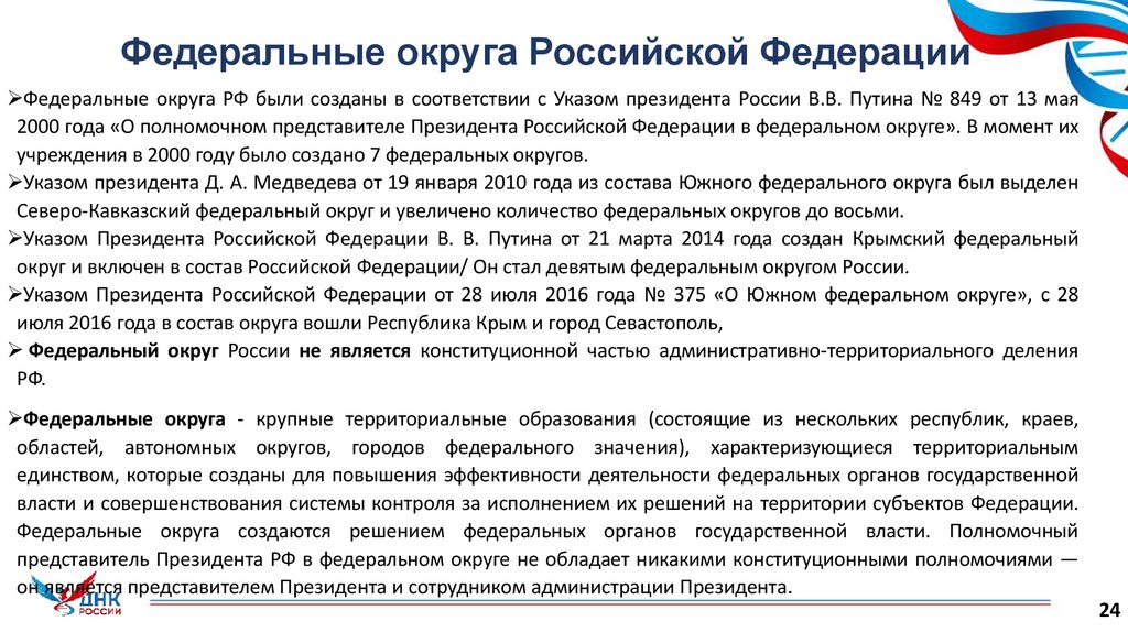 округ и включен в состав Российской Федерации/ Он стал девятым федеральным округом России.