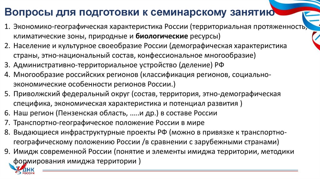 Вопросы для подготовки к семинарскому занятию1. Экономико-географическая характеристика России (территориальная протяженность,