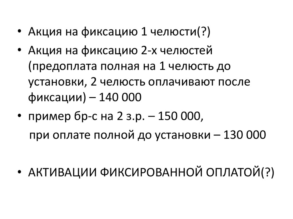 • Акция на фиксацию 1 челюсти(?)• Акция на фиксацию 2-х челюстей