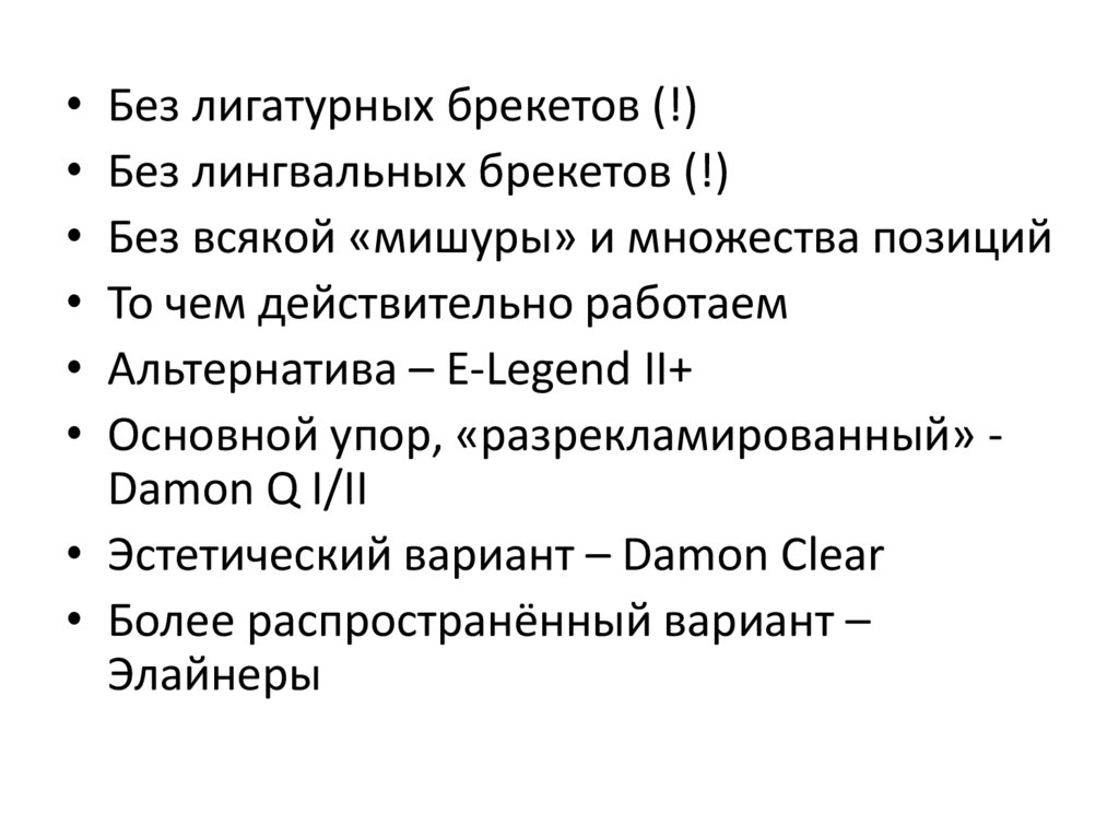 • Без лигатурных брекетов (!)• Без лингвальных брекетов (!)