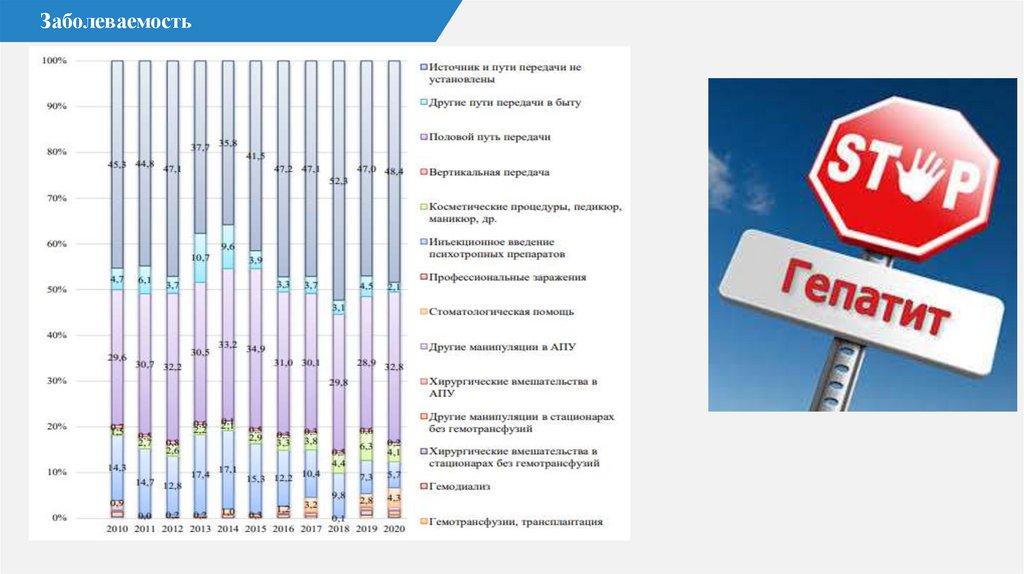 • Гепатит В стоит на десятом месте среди наиболее распространенных