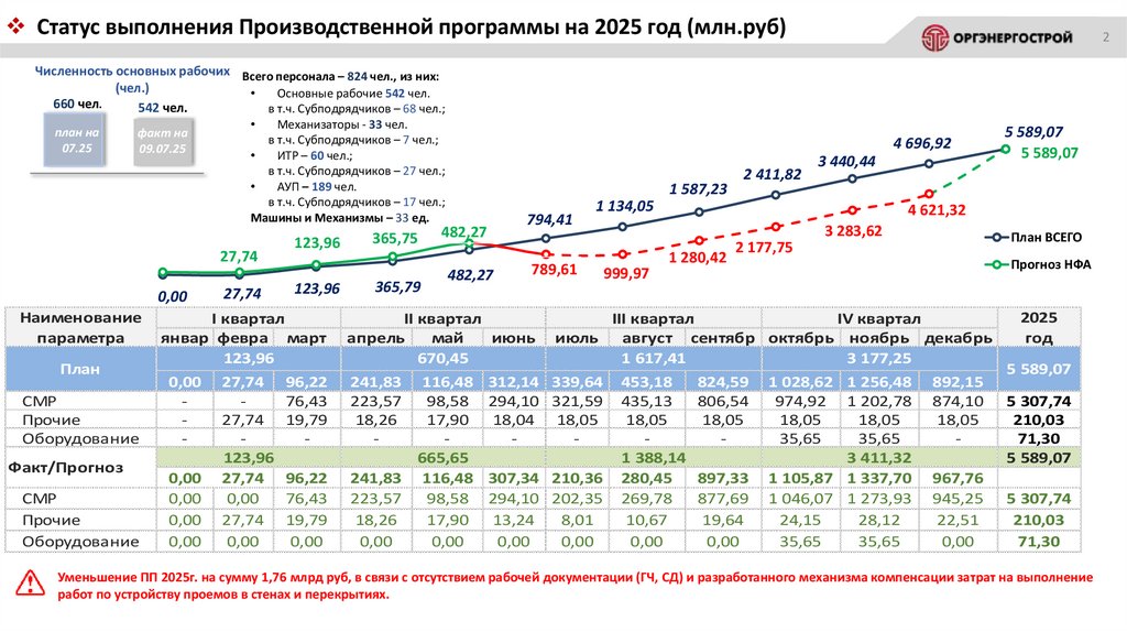 Статус выполнения Производственной программы на 2025 год (млн.руб)2