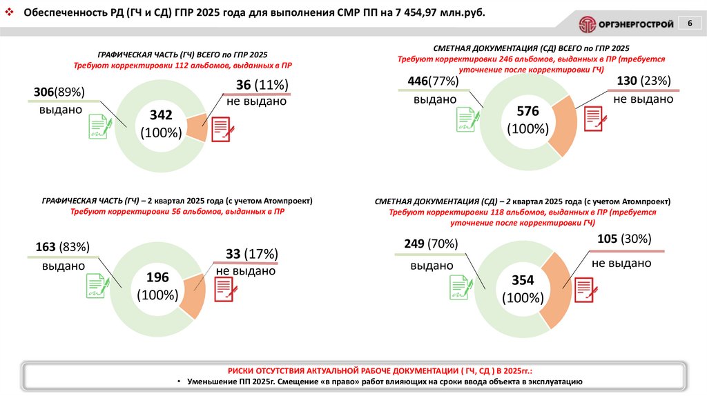 Обеспеченность РД (ГЧ и СД) ГПР 2025 года для выполнения СМР ПП на 7 454,97 млн.руб.6