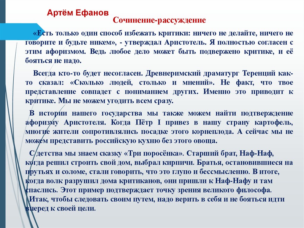 Артём ЕфановСочинение-рассуждение
