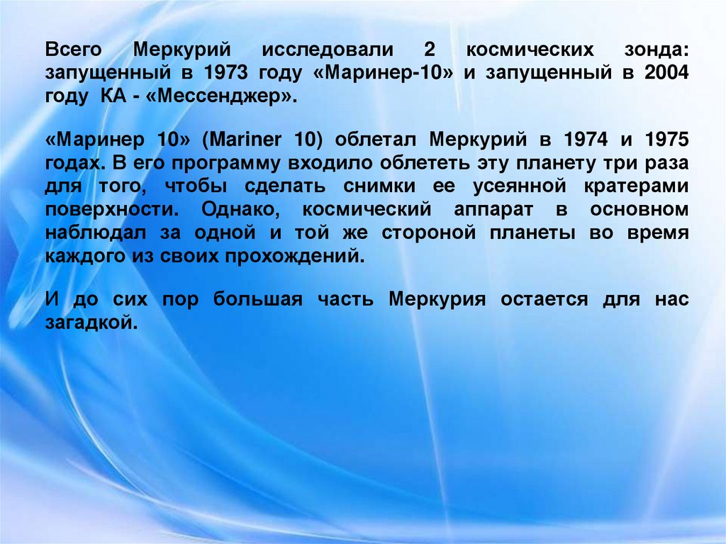 планету: Mariner-10 (Маринер-10) в 1974-1975 гг. и MESSENGER