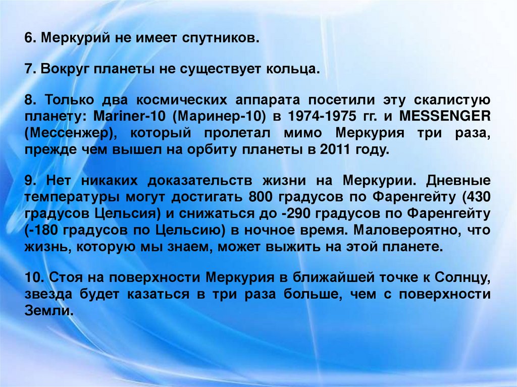 9. Нет никаких доказательств жизни на Меркурии. Дневные