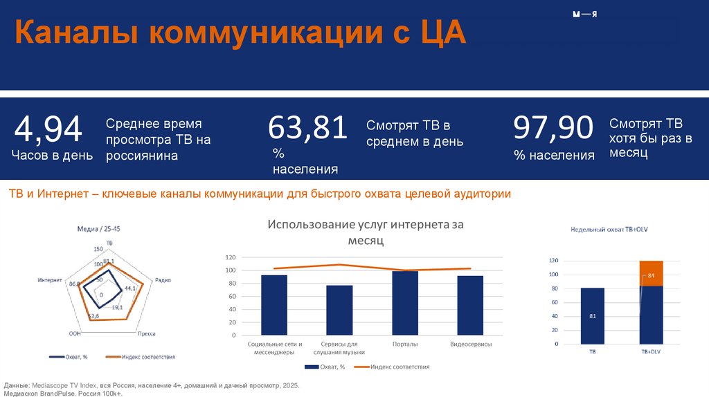 Данные: Mediascope TV Index, вся Россия, население 4+, домашний и дачный просмотр, 2025.