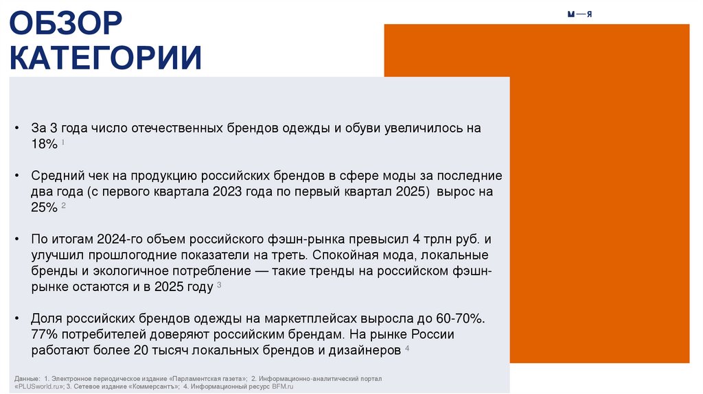 • Средний чек на продукцию российских брендов в сфере моды за последние