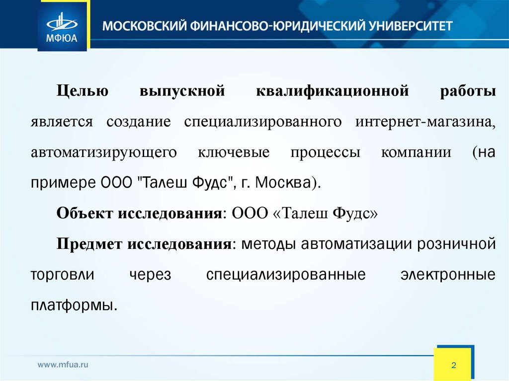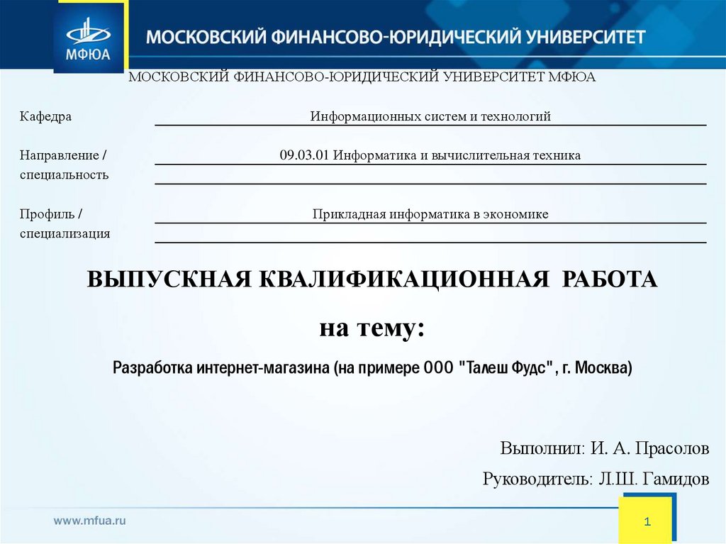 1. ВЫПУСКНАЯ КВАЛИФИКАЦИОННАЯ РАБОТА на тему: Разработка интернет-магазина (на примере ООО "Талеш Фудс", г. Москва)