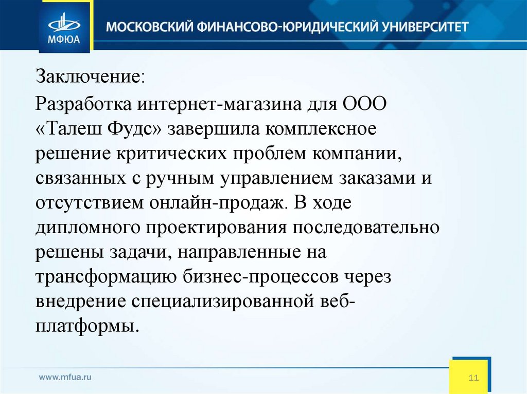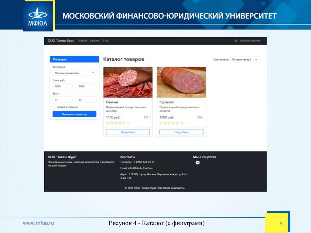 Разработка интернет-магазина (на примере ООО "Талеш Фудс", г. Москва)