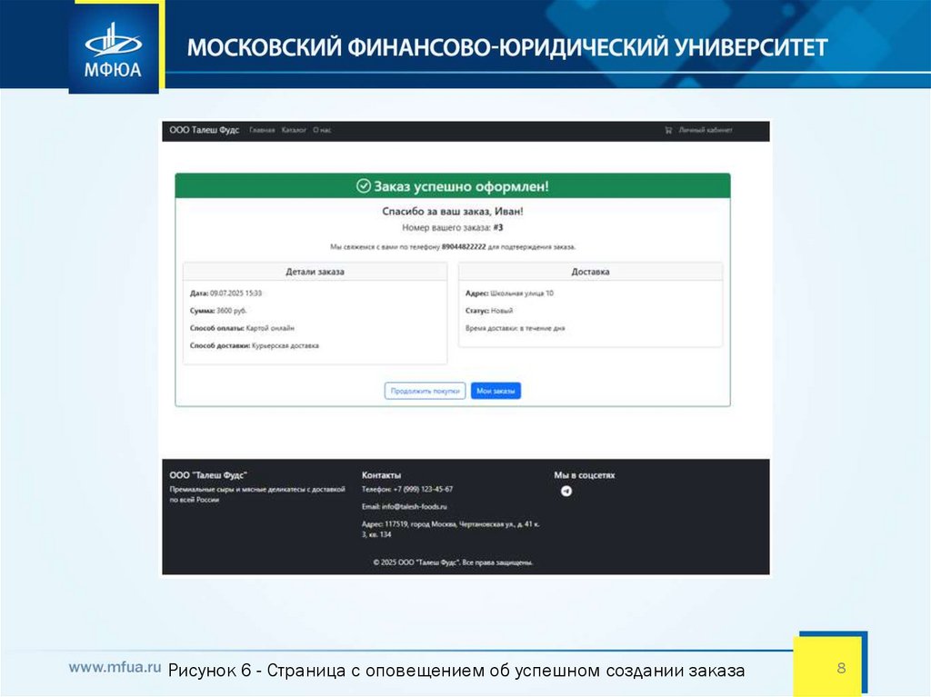 Рисунок 6 - Страница с оповещением об успешном создании заказа8