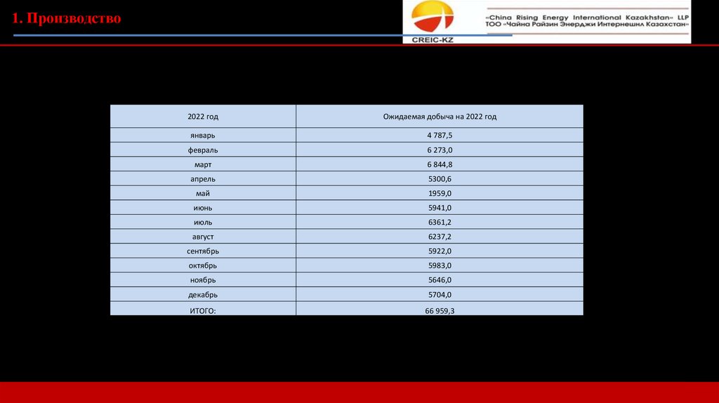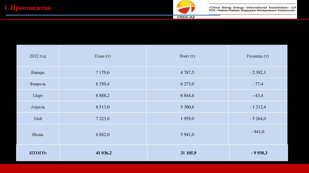 За I-ое полугодие 2022 года планируемая добыча нефти составила 41 036,2 тонн, фактически добыто 31 105,9 тонн, разница составила 9 930,3 тонны.