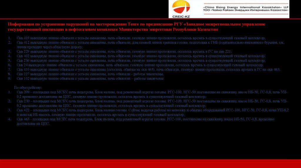 всех добывающих нефтяных скважин по причине забастовок рабочего персонала на м/р Тенге.