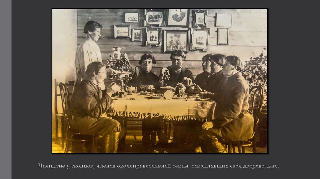 Чаепитие у скопцов, членов околоправославной секты, оскоплявших себя добровольно.14.