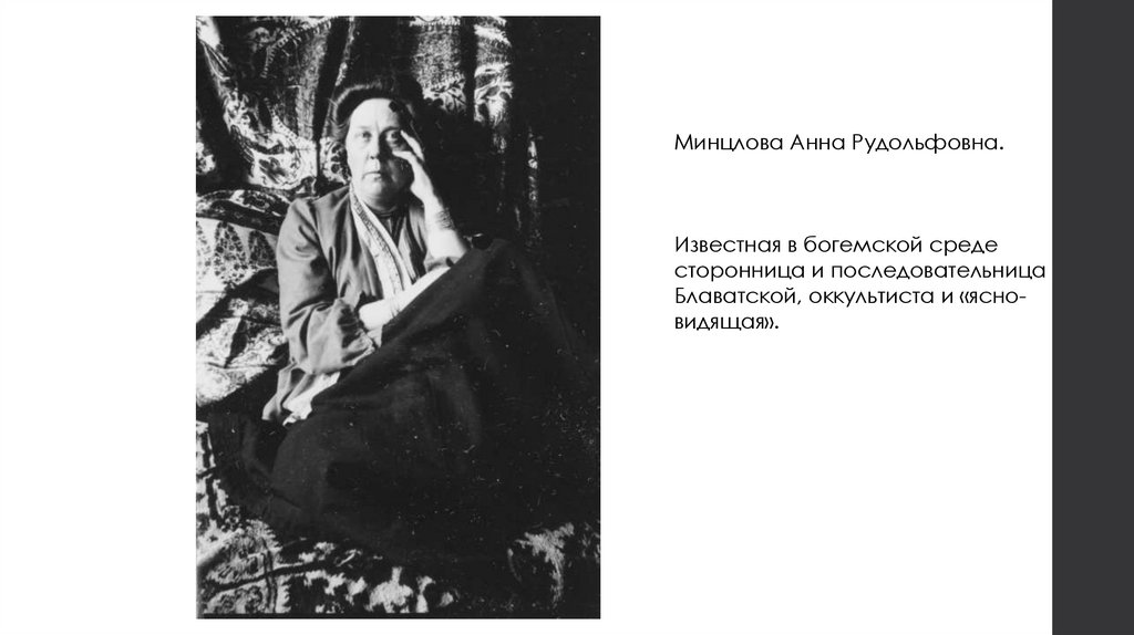 Минцлова Анна Рудольфовна.Известная в богемской среде