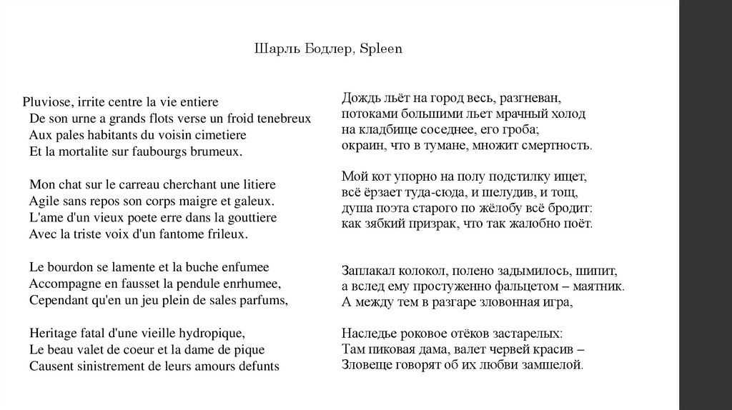 Шарль Бодлер, SpleenPluviose, irrite centre la vie entiere