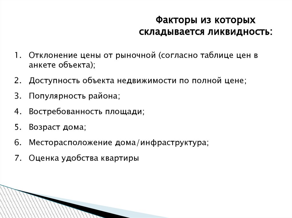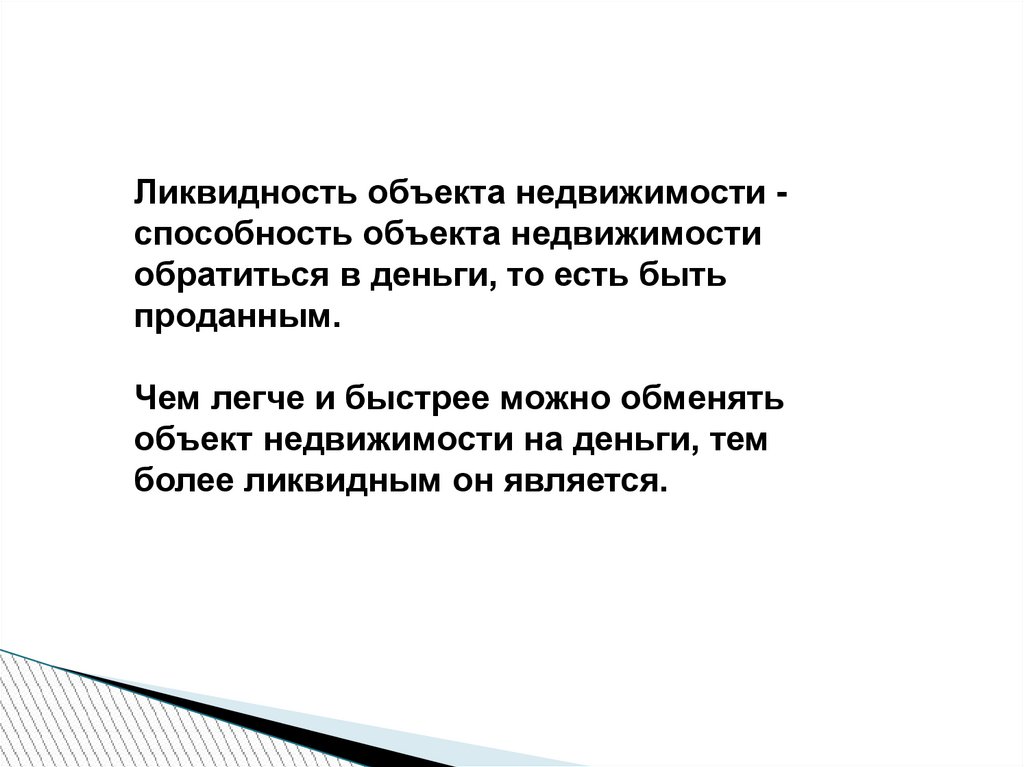 Ликвидность объекта недвижимости способность объекта недвижимостиобратиться в деньги, то есть быть