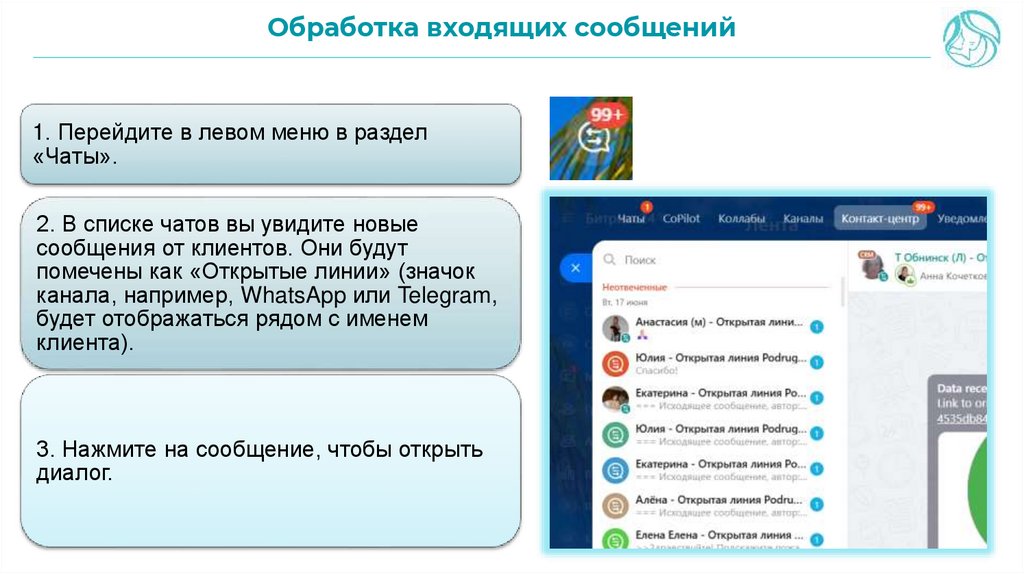 Обработка входящих сообщений1. Перейдите в левом меню в раздел