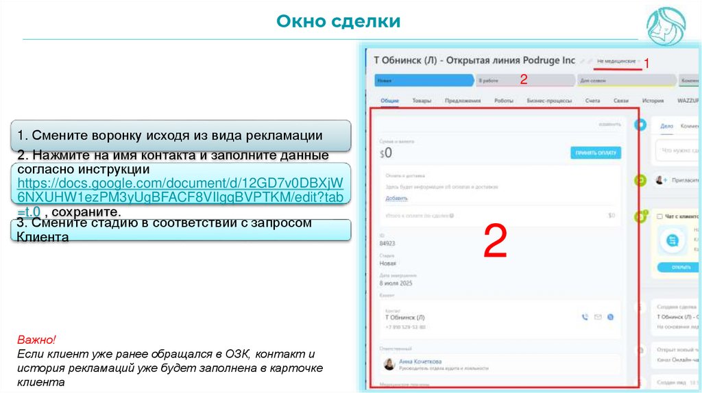 Если клиент уже ранее обращался в ОЗК, контакт и