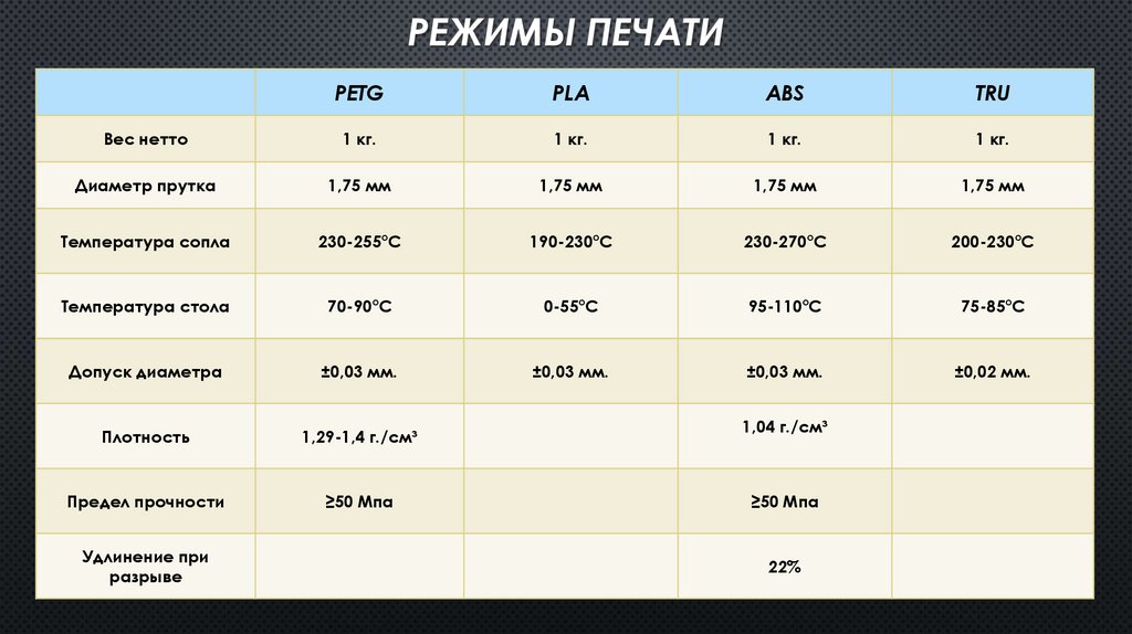РЕЖИМЫ ПЕЧАТИPETG