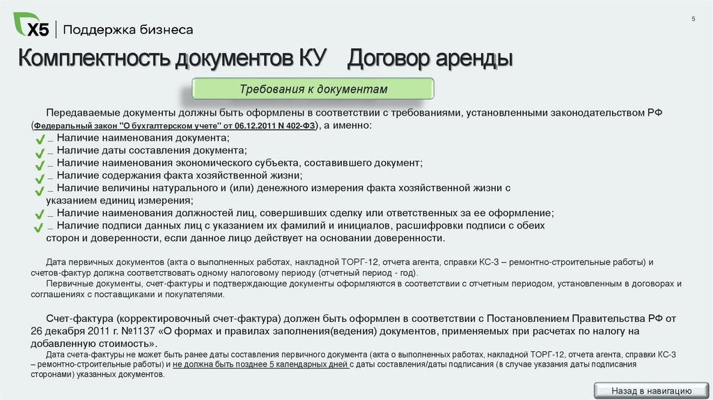 5Комплектность документов КУ Договор аренды