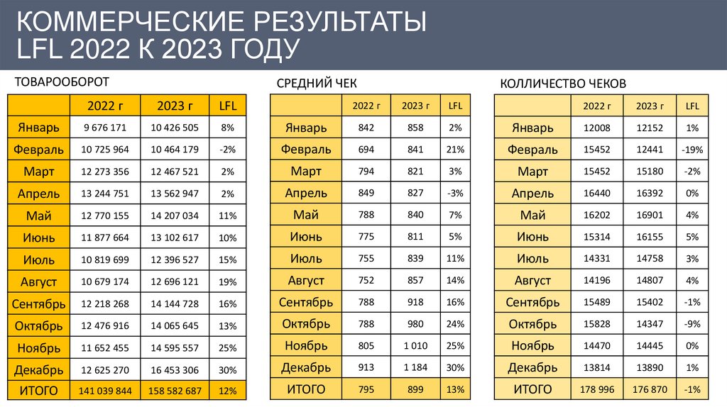КОММЕРЧЕСКИЕ РЕЗУЛЬТАТЫLFL 2022 К 2023 ГОДУ