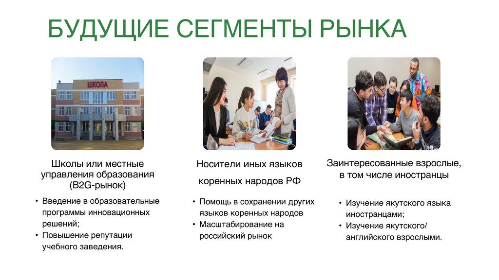БУДУЩИЕ СЕГМЕНТЫ РЫНКАШколы или местные