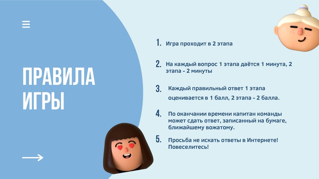 2. На каждый вопрос 1 этапа даётся 1 минута, 2