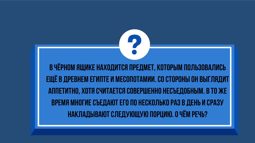 В чёрном ящике находится предмет, которым пользовалисьещё в Древнем Египте и Месопотамии. Со стороны он выглядит