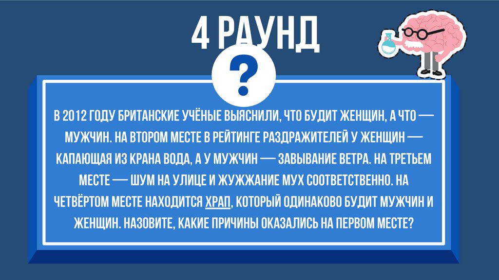 4 раундВ 2012 году британские учёные выяснили, что будит женщин, а что —